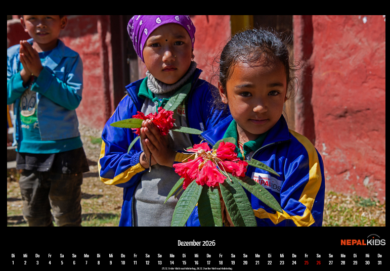 Ab sofort kann der klimaneutral gedruckte Kalender 2026 bestelt werden. Das Format ist wie immer DIN A2. Preis: 19,80 € + 6 € Versand. Einfach per eMail bestellen. Bestellt bitte hier. Oder E-Mail: kalender(at)nepalkids.de |